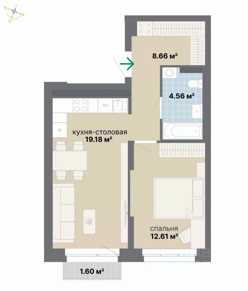 56 м² · Этаж 4 из 16