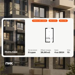 Продаётся квартира-студия площадью 23,5 кв.м на 23 этаже 24 этажного дома (Корпус 4, Секция 1) проекта ПИК Исеть парк. Светлый просторный подъезд на уровне земли, функциональная планировка, большие окна, предчистовая отделка. ''Исеть парк'' возводится в Октябрьском районе Екатеринбурга — на берегу реки Исеть в окружении трёх крупных лесопарков. До метро ''Ботаническая'' можно дойти за 15 минут, а дорога на автомобиле до центра города занимает 20 минут. Проект включает шесть домов и многоуровневый паркинг. На первых этажах открываются кафе, магазины и полезные сервисы. А в уютных дворах-парках есть детские и спортивные площадки. Район хорошо развит: есть школы и детские сады, магазины и поликлиники. Ещё здесь находится большой развлекательный комплекс с аквапарком ''Лимпопо'' и крупнейший на Урале океанариум, городской зоопарк и Академический театр оперы и балета. Артикул 869860 (Застройщик ООО ''СЗ ''Столица'')