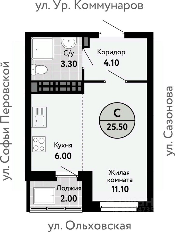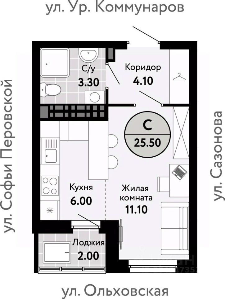 Общая площадь25,67 м2