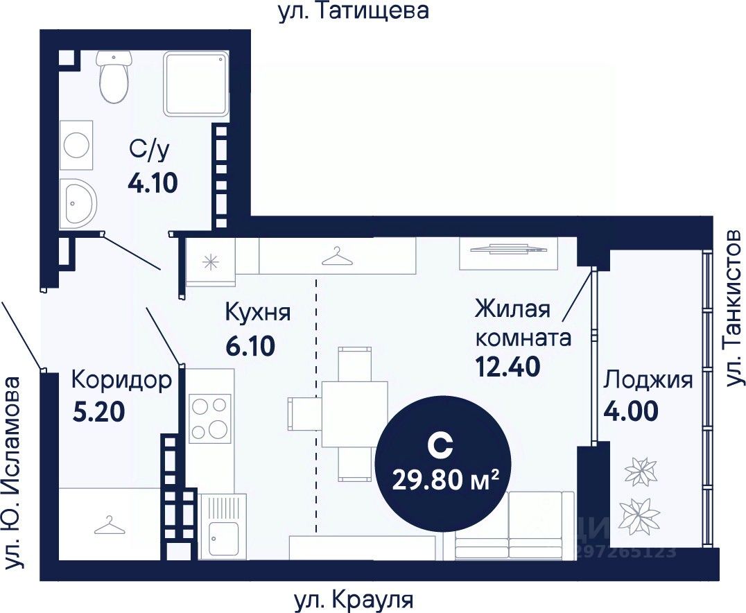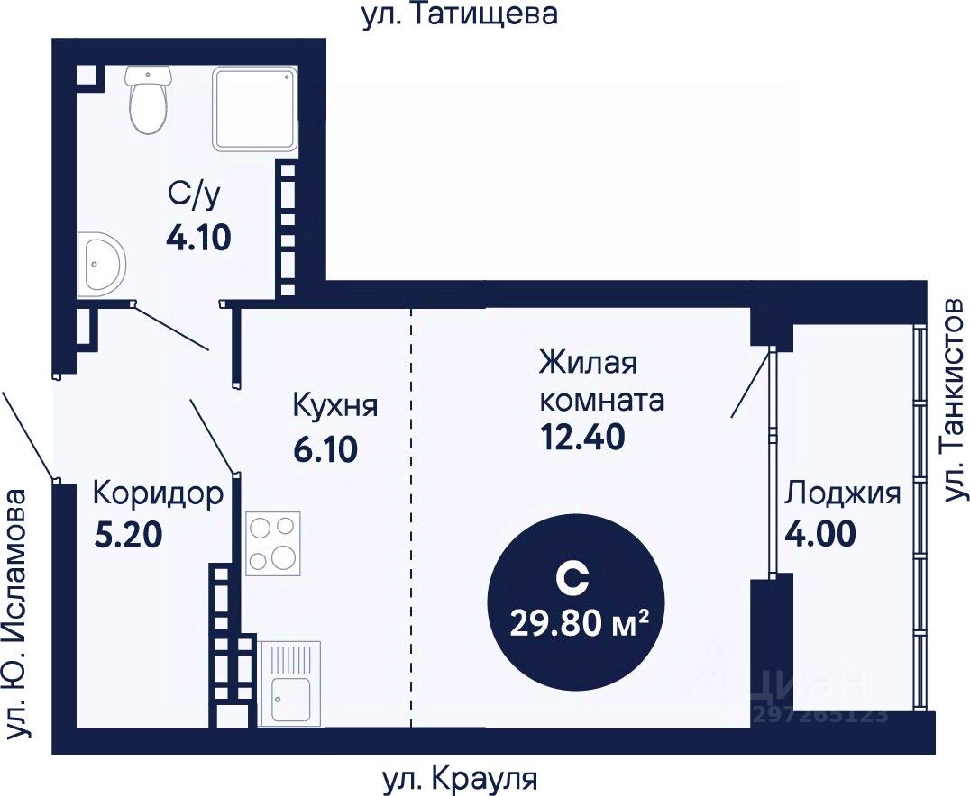продам 1-к, Крауля, 170а5 630 000 ₽