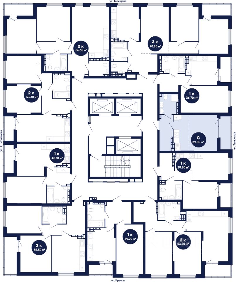 Доступ в подъезды на уровне земли — без барьеров Домофоны в тёплых остеклённых тамбурах Вместительные грузопассажирские лифты во всех секциях Помещения для колясок и самокатов на 1 этаже Удобная навигация с номерами этажей и квартир