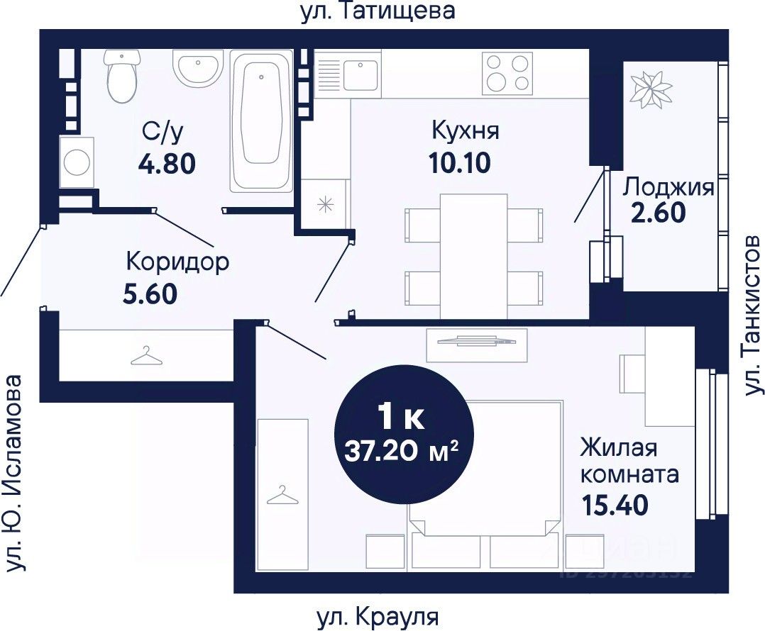 продам 1-к, Крауля, 170а5 940 000 ₽