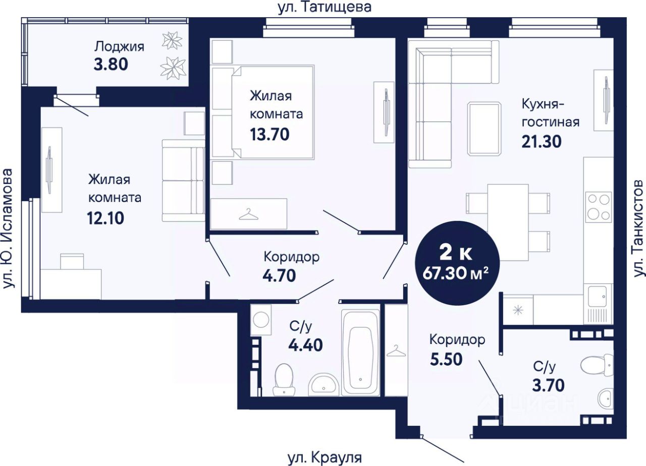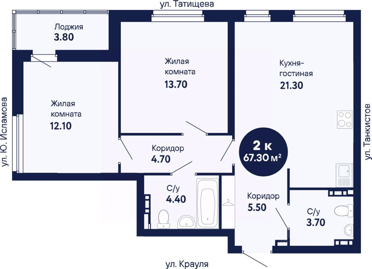 Прочный водостойкий ламинат на полу в комнатах, прихожих и кухнях, плитка в санузлах, на стенах виниловые обои на флизелиновой основе, белые натяжные потолки Межкомнатные двери светлых тонов и сейф-дверь на входе в квартиру В санузлах установлены раковины и унитазы, а во всей квартире — розетки и выключатели Радиаторы с терморегуляторами и горизонтальной разводкой, двухкамерные стеклопакеты с приточными клапанами вентиляции Телеметрические счётчики на свет, тепло и воду