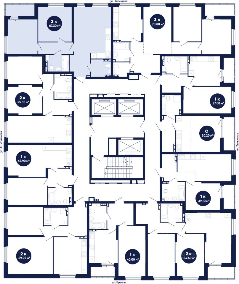 Доступ в подъезды на уровне земли — без барьеров Домофоны в тёплых остеклённых тамбурах Вместительные грузопассажирские лифты во всех секциях Помещения для колясок и самокатов на 1 этаже Удобная навигация с номерами этажей и квартир