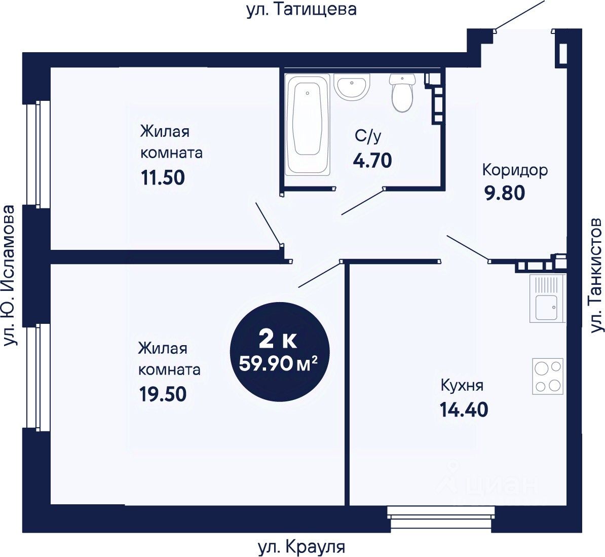 продам 2-к, Крауля, 170а8 540 000 ₽
