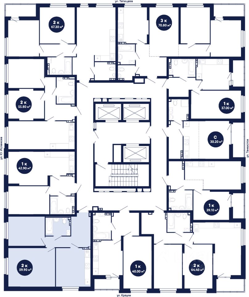 Доступ в подъезды на уровне земли — без барьеров Домофоны в тёплых остеклённых тамбурах Вместительные грузопассажирские лифты во всех секциях Помещения для колясок и самокатов на 1 этаже Удобная навигация с номерами этажей и квартир