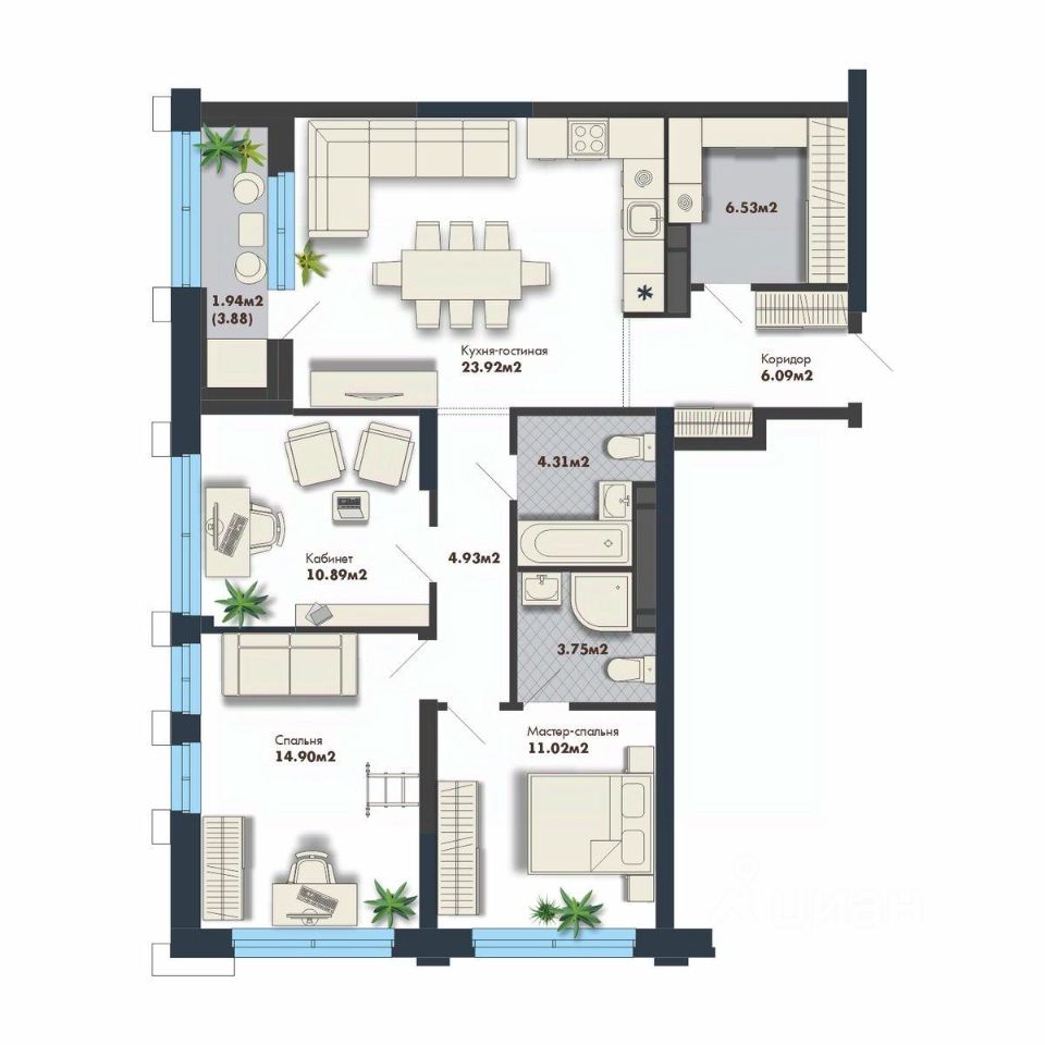 продам 3-к, Базовый переулок, 2 стр.15 100 714 ₽
