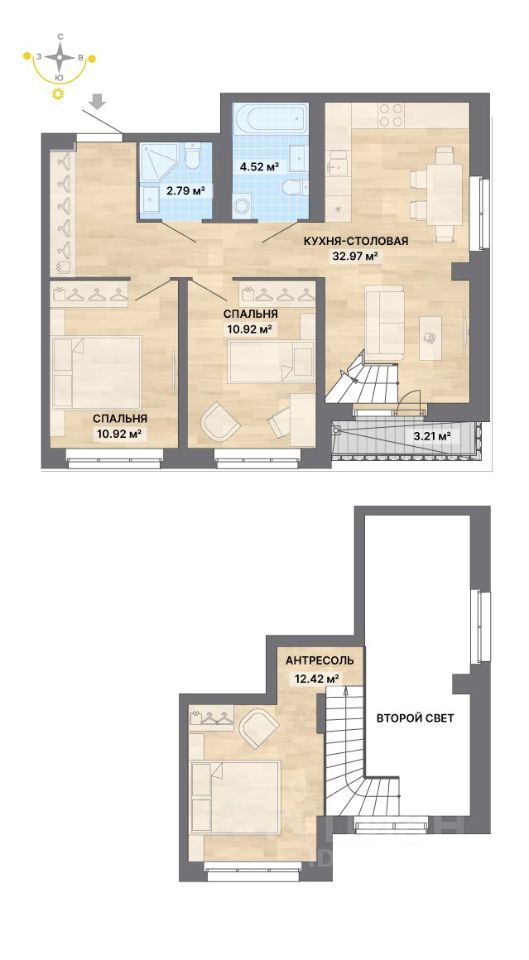 Закрытый зелёный двор-сад. Подземный паркинг с доступом на лифте. Готовые квартиры с чистовой отделкой, в том числе варианты с мебелью, доступные в ''Арендотеку''.