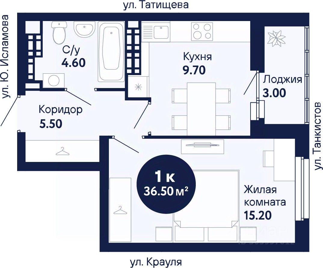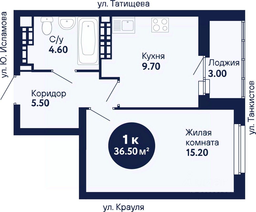 продам 1-к, Крауля, 170а6 600 000 ₽