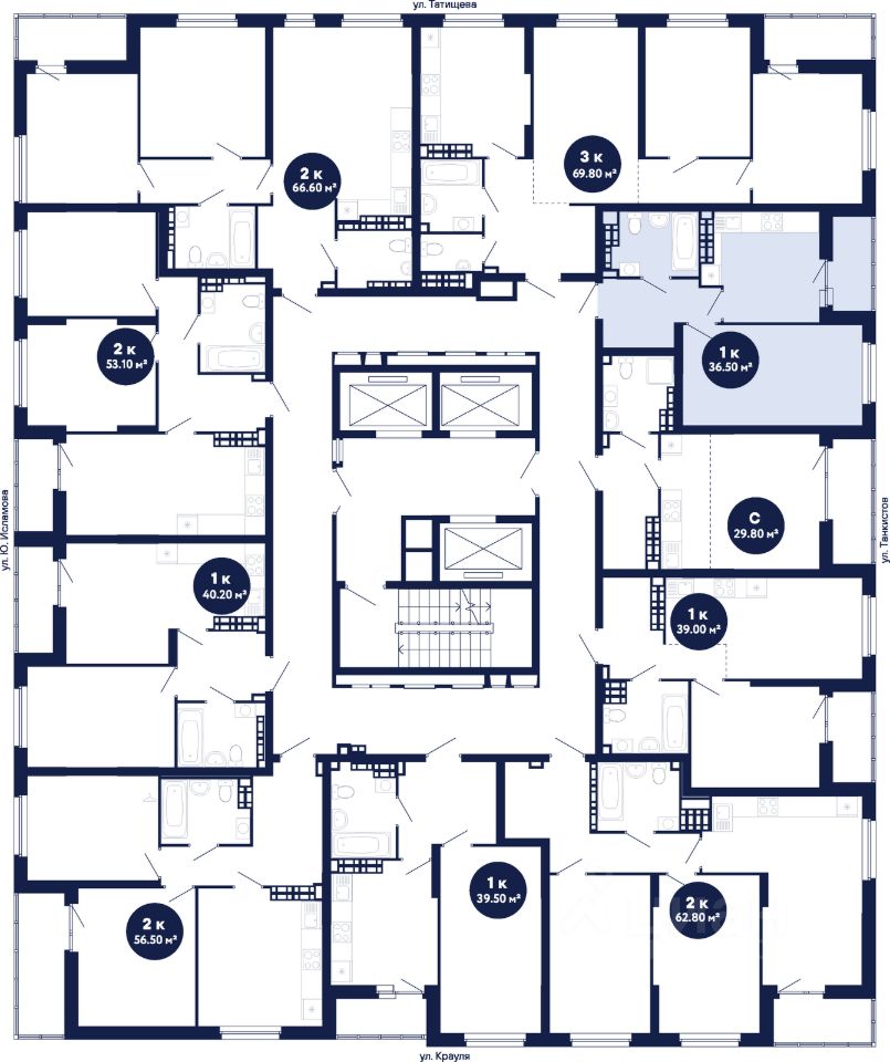 Доступ в подъезды на уровне земли — без барьеров Домофоны в тёплых остеклённых тамбурах Вместительные грузопассажирские лифты во всех секциях Помещения для колясок и самокатов на 1 этаже Удобная навигация с номерами этажей и квартир