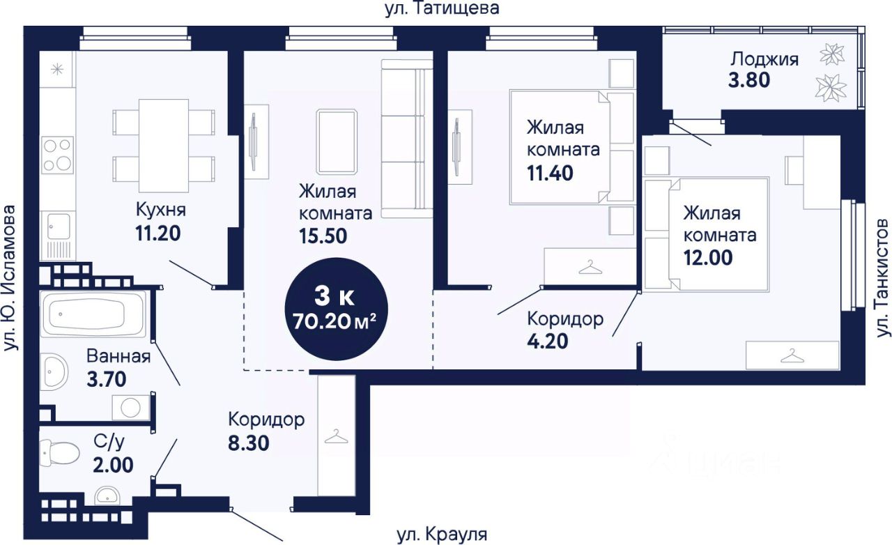 Общая площадь70,79 м2