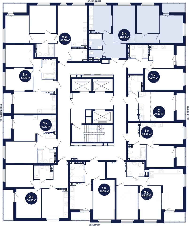 Доступ в подъезды на уровне земли — без барьеров Домофоны в тёплых остеклённых тамбурах Вместительные грузопассажирские лифты во всех секциях Помещения для колясок и самокатов на 1 этаже Удобная навигация с номерами этажей и квартир