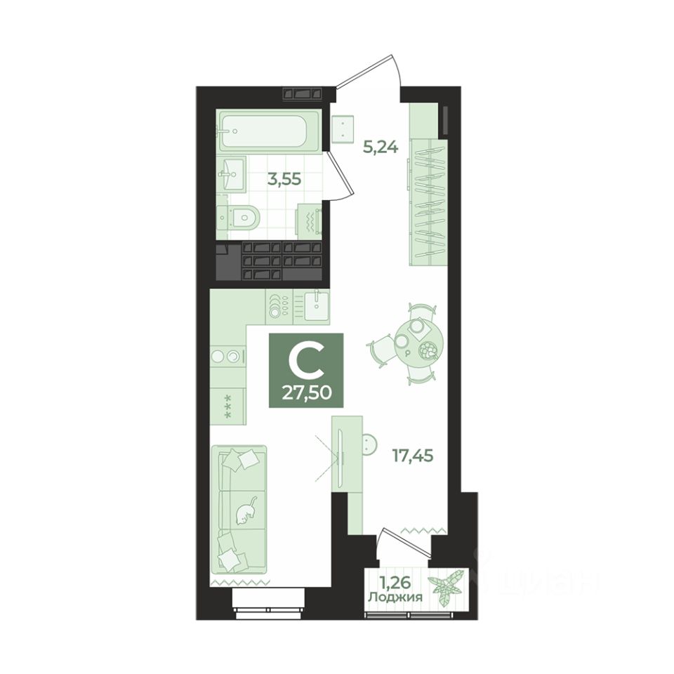 Общая площадь27,5 м2