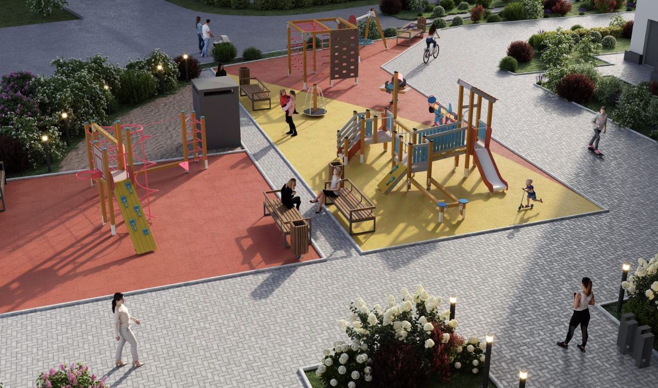 О Дворе: - Закрытая охраняемая территория формата ''двор без машин'' - Благоустроенная детская площадка с использованием малых архитектурных форм - Мусорные контейнеры на дворовой территории рядом с паркингом