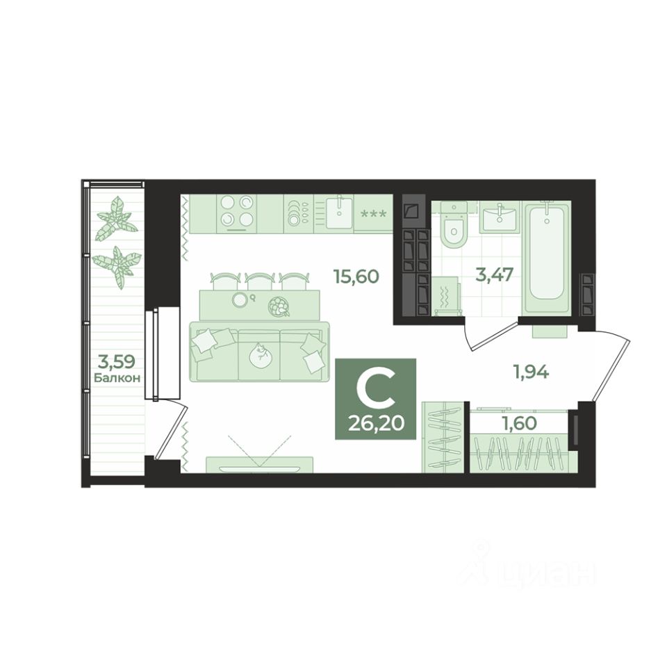Общая площадь26,2 м2