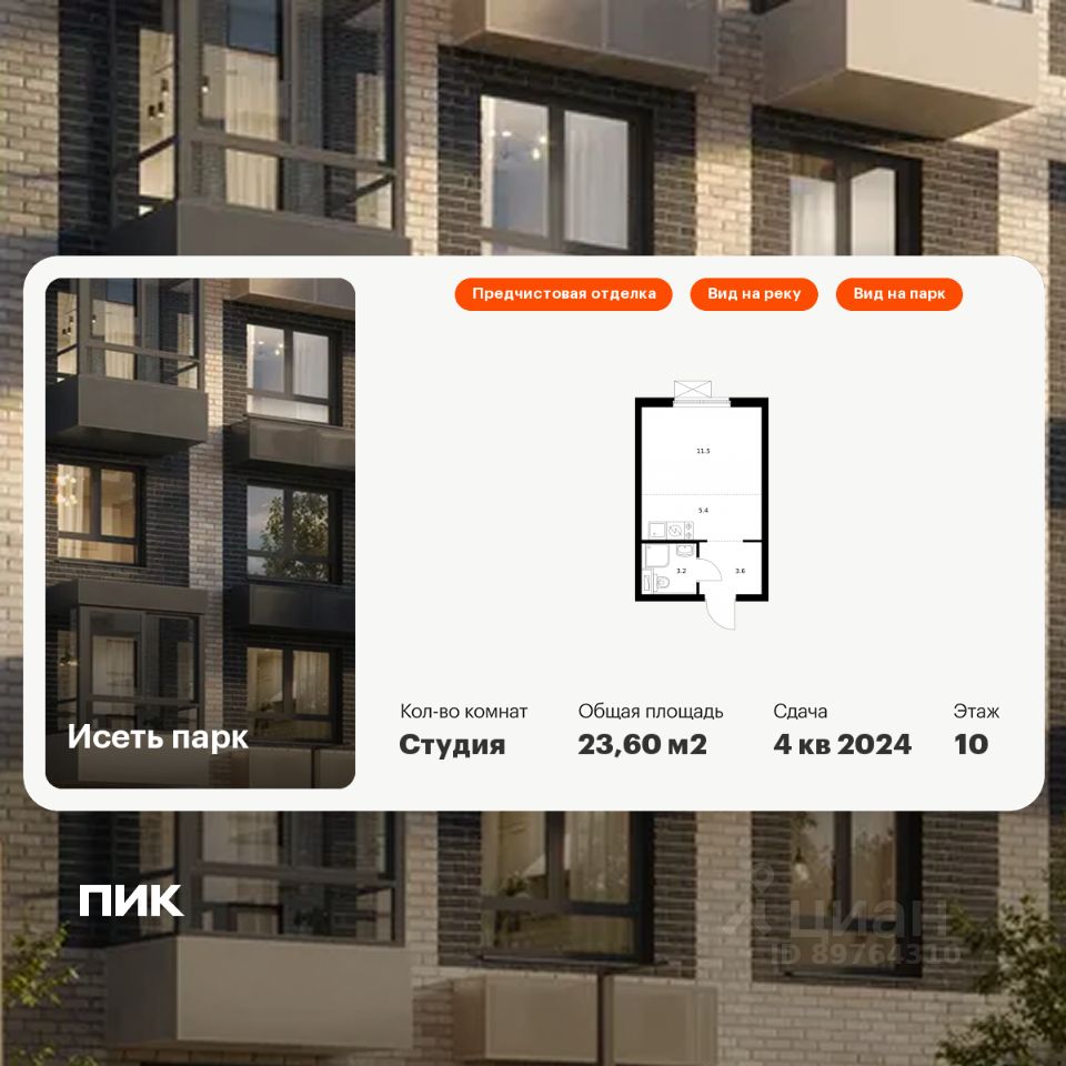 Продаётся квартира-студия площадью 23,6 кв.м на 10 этаже 24 этажного дома (Корпус 4, Секция 1) проекта ПИК Исеть парк. Светлый просторный подъезд на уровне земли, функциональная планировка, большие окна, предчистовая отделка.