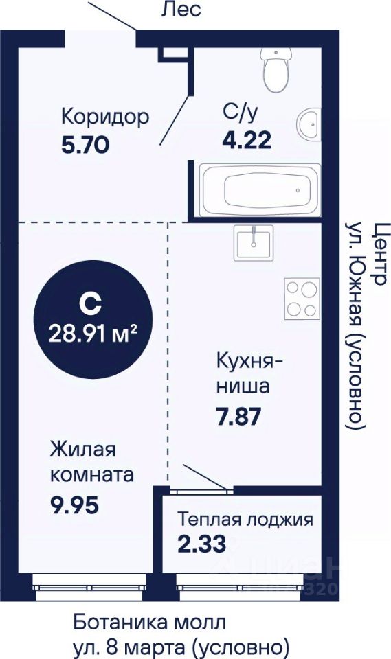 Общая площадь28,91 м2