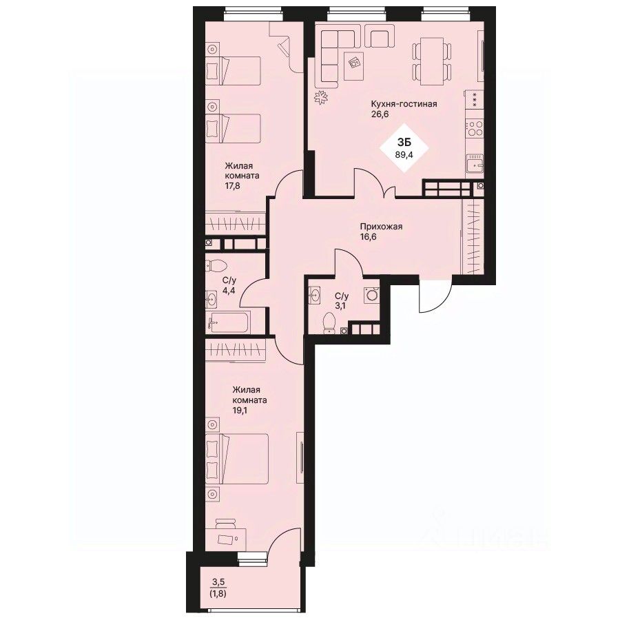 Общая площадь89,35 м2