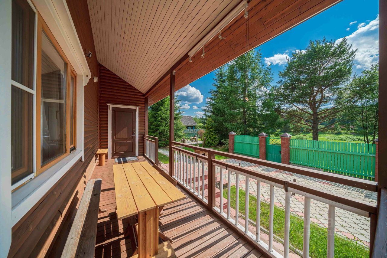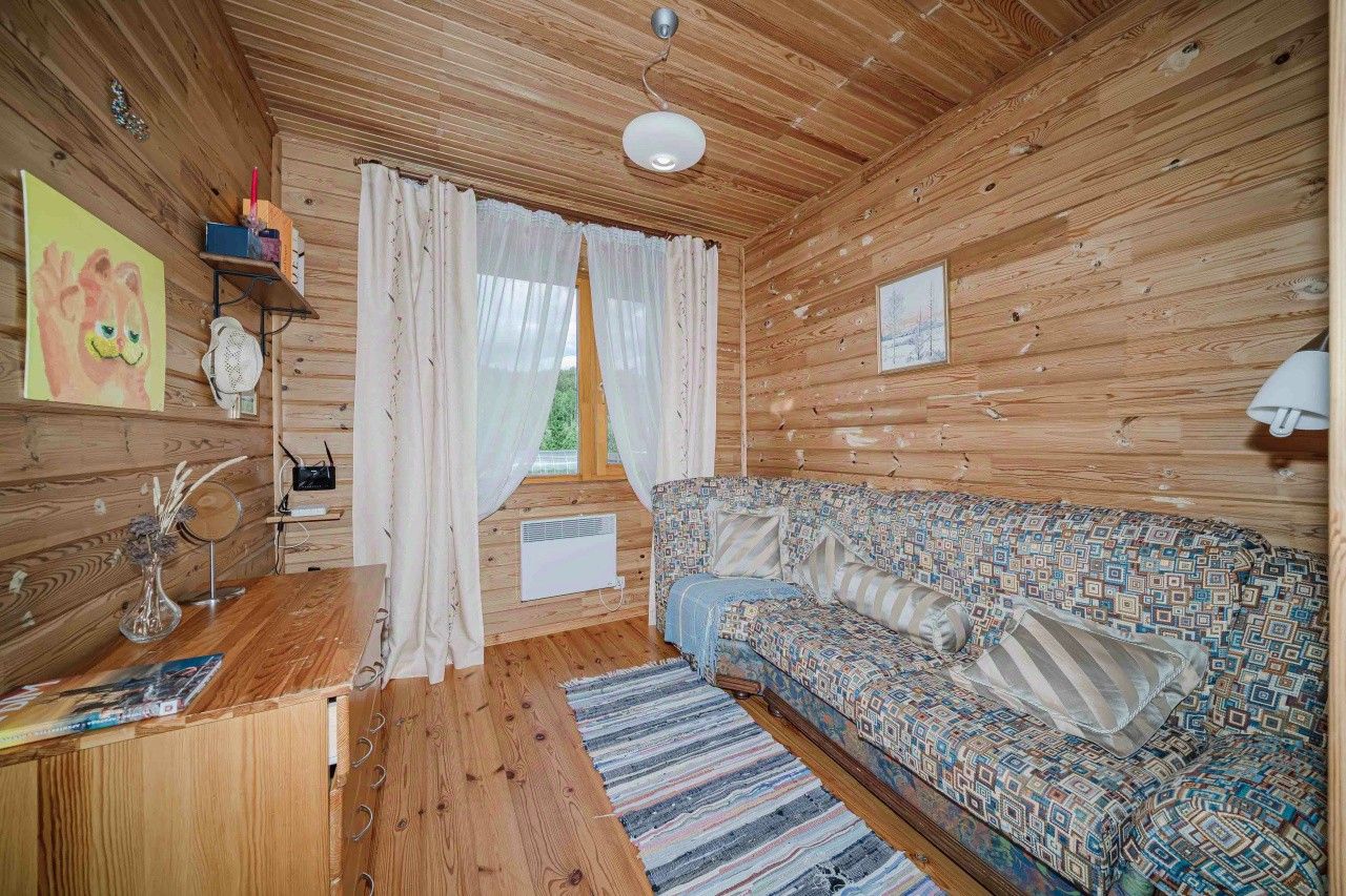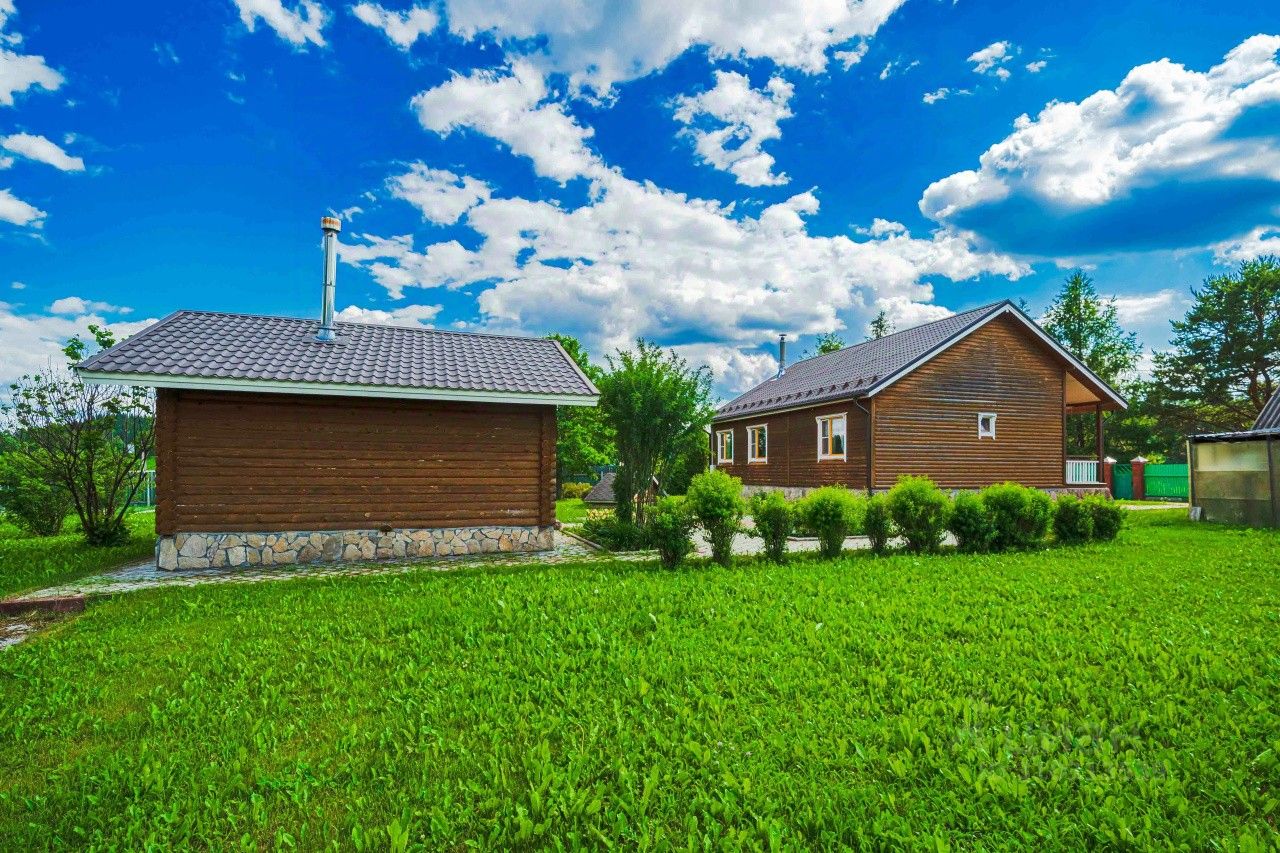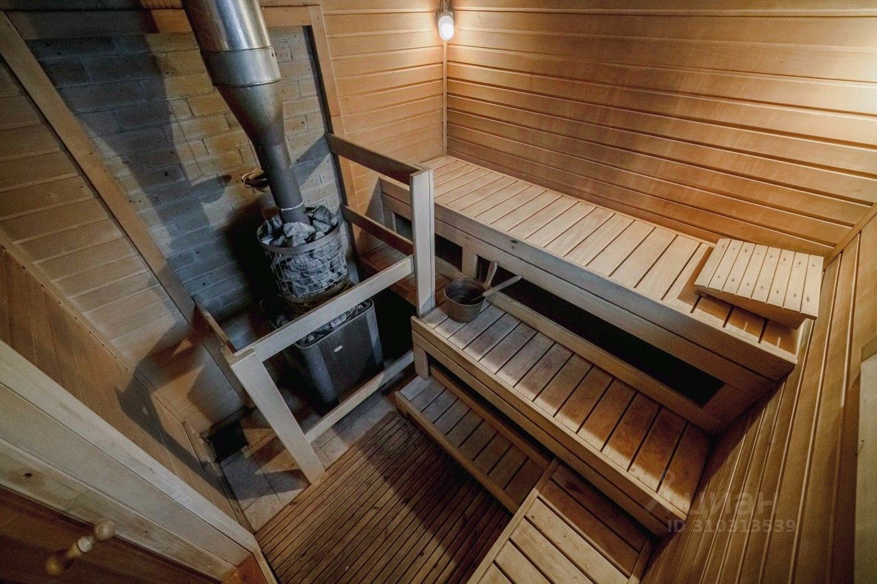 2) Русская баня площадью 36 м2 из оцилиндрованного бревна. Состоит из парилки с финской дровяной печью-каменкой ''Харви'', комнаты отдыха, душевой, санузла. Есть горячая и холодная вода, канализация, отопление, тёплый пол (душевая, санузел). Баня может использоваться круглогодично как гостевой дом.