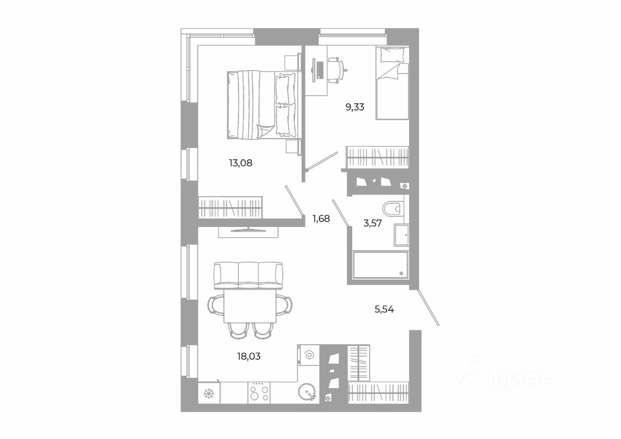 - Кладовые помещения на каждом этаже и на -1 этаже. В проекте 25 планировочных решений: от уютных студий от 21,51 м² до квартир с тремя спальнями и кухней-гостиной до 66,58 м² с функциональным разделением на гостевую и приватные зоны.