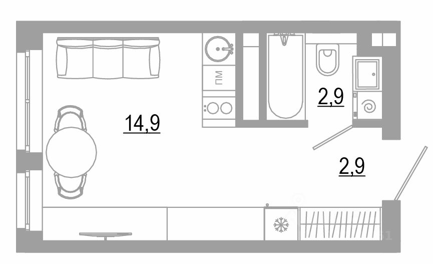 \- квартиры с кухней-гостиной и отдельной комнатой,