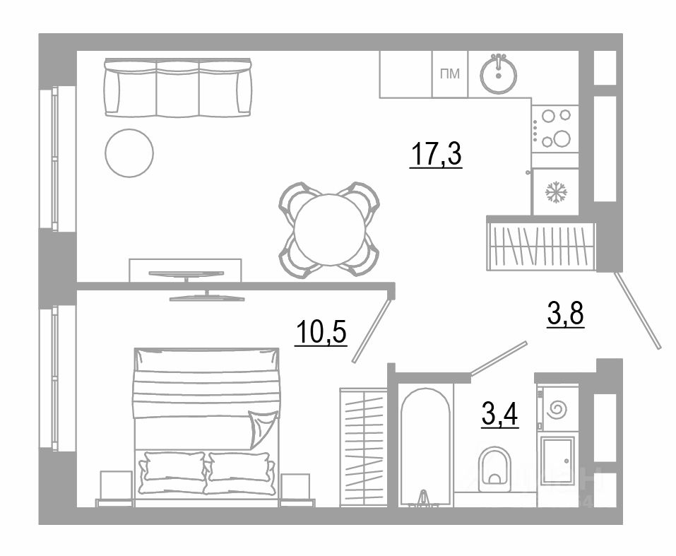 В комплексе представлено 25 планировок с площадью квартир от 21 м² до 65 м² для разных жизненных сценариев жизни: