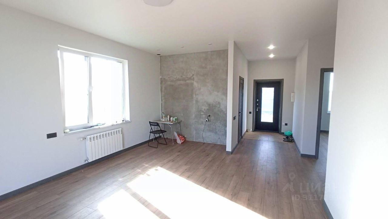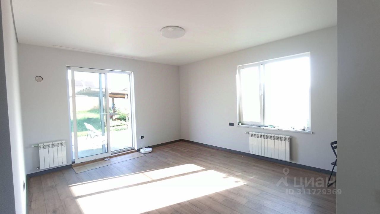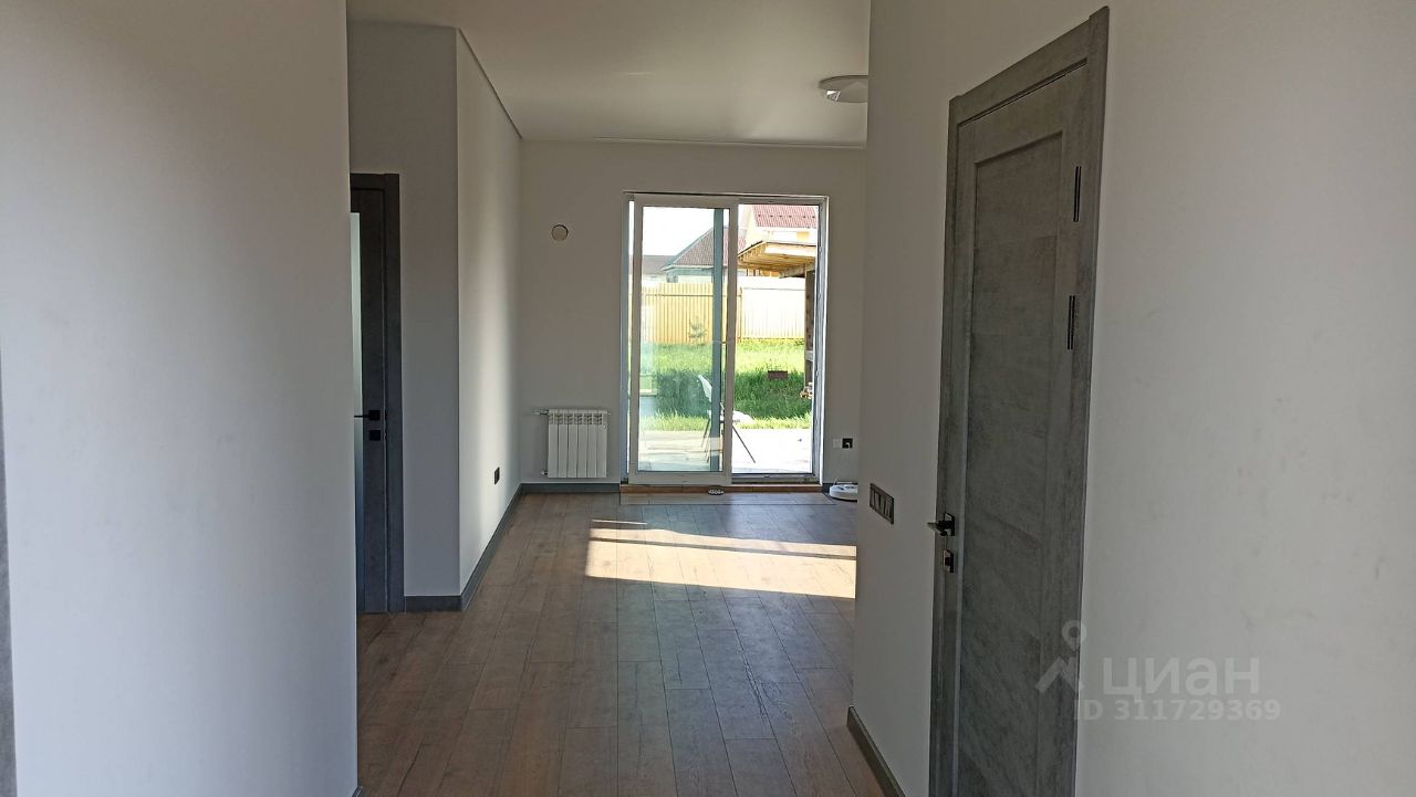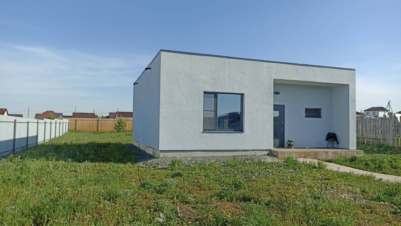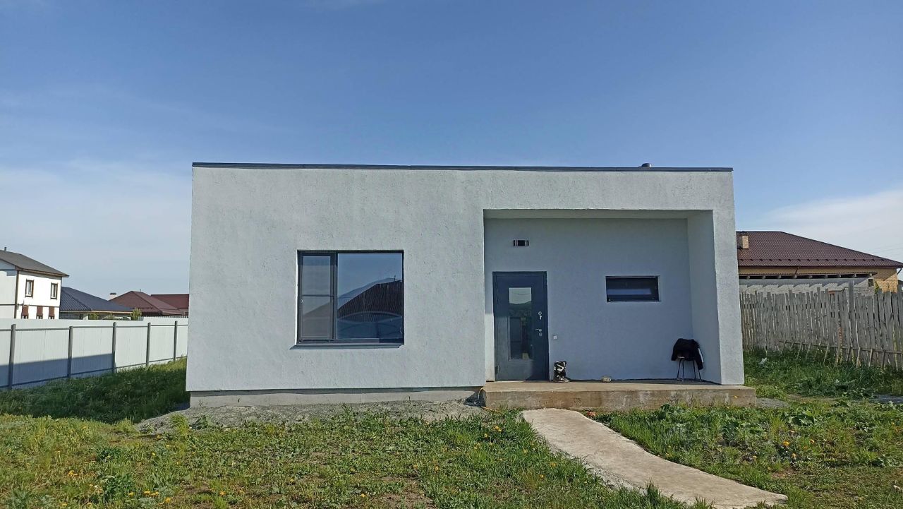 Новый современный загородный дом. Наш небольшой, но очень светлый и уютный Дом был специально разработан и спроектирован с учетом пожеланий молодых семей. Планировка дом включает в себя: - гостиная с панорамным окнам и выходом на террасу - кухня - обеденная зона - две спальни, расположены в отдельной зоне - ванная комната, котельная. - теплый тамбур - большая гардеробная комната В доме выполнена чистовая отделка: - на полу: качественный ламинат уложен одним ковром по всему дому без стыков и порогов - в мокрых зонах сделан керамогранит с теплым полом - стены в комнатах оклеены обоями - ванная комната облицована плиткой - установлены коллекционные межкомнатные двери - входная дверь сделана на заказ, толщеной 140 мм с терморазрывом и тонированным четырехкамерным стеклопакетам. - окна 70 профиль с энергосберегающими стеклопакетами, фурнитура фирмы Roto. - панорамное окно в зале имеет откатную дверь, что положительно сказывается на комфорте и безопасности. - натяжные потолки с люстрами и точечными светильниками сделаны по всему дому, также для комфорта установлены переходные выключатели. Дом построен с соблюдением строительных нормативов: - Фундамент: армированная плита 300 мм. - Стены: твинблок 400, фасадный утеплитель, декоративная штукатурка. - Перекрытия: железобетонные плиты. - Крыша: кровля 200 мм перекрестный утеплитель, полусухая стяжка, наплавляемая гибкая черепица Технониколь. - Высота потолка 3 метра - Отопление: экономичный водяной электрокател Thermex с технологией Умный дом, радиаторы. - Вода: скважина 54 м (питьевая) - Канализация: локальная 6 куб. Участок: - Большой 9.7 соток, прямоугольный, ровный - Огорожен по периметру забором - Установлены калитка, распашные ворота для заезда во двор - На заднем дворе установлена крытая веранда с мангалом для вечерних посиделок. Звоните, приезжайте на просмотр Вашего загородного дома!