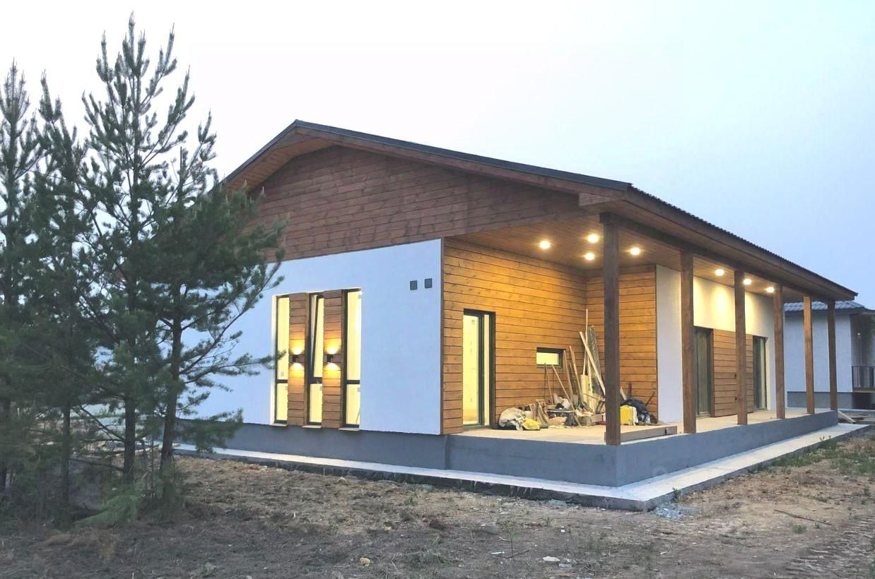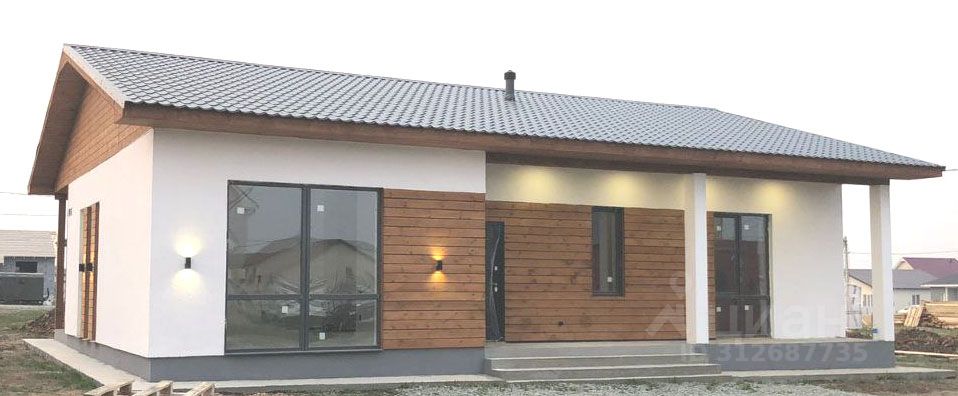 Описание дома • Готовый дом площадью 150 м² с террасой 40 кв.м и панорамными окнами • Участок 6.7 соток • Цена указана с отделкой под ключ и участком Удобства и инфраструктура • Охрана • Асфальтированная дорога • Газ • Отмостка • Высота потолков 3 м Планировка и помещения • 3 спальни по 14 кв.м все с выходами на террасу или крыльцо • Большая кухня-гостиная 36 кв.