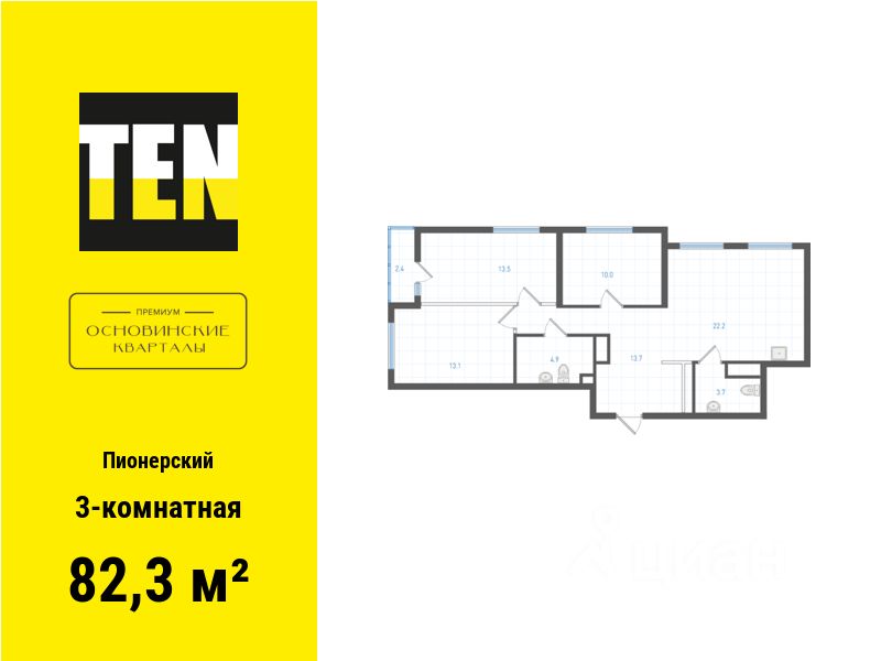 Квартира в ЖК ''ОК: Премиум'' в Пионерском микрорайоне от застройщика TEN девелопмент! Ключи во 2 квартале 2027 года. ЖК ''ОК: Премиум'' - это продолжение квартала, украсившего локацию Основинского парка, включающего 5 домов высотой от 14 до 31 этажей. Спокойный архитектурный облик, классические линии и формы, гармоничное сочетание цветовых решений все подчеркивает респектабельный характер второй очереди жилого комплекса ''Основинские кварталы''. Вдохновение природой Здесь не просто ландшафтное озеленение, а целые коллекции цветов и деревьев - различные сорта яблонь, сирени, гортензий и других растений - настоящий питомник в собственном дворе! Двор закрыт от машин и посторонних, при этом учтены интересы всех жителей как маленьких, так и взрослых. Разнообразные динамичные площадки для игр, ворк-аут зоны, амфитеатр, площадка для йоги не только созерцать, но и наслаждаться активным отдыхом! Контроль доступа, видеонаблюдение и круглосуточная охрана обеспечат безопасность для себя и близких. Спокойствие и респектабельность Входные группы прозрачные и расположены на уровне тротуара, чтобы было удобно завозить коляску или велосипед. Дизайн холлов выполнен в классическом выдержанном стиле. Для удобства жителей здесь есть мягкие зоны, колясочная и лапомойка, для автолюбителей - подземный паркинг. Свобода без ограничений Разнообразие планировочных решений позволит воплотить любые идеи и желания: насладиться видами с собственной террасы, обустроить второй уровень с потолком под 3,5 м, реализовать самые смелые дизайнерские решения. Отделка под чистовую. В санузле — монолитный потолок, на полу — гидроизоляция и стяжка, стены оштукатурены. В одном санузле установлены унитаз и раковина. В остальных помещениях потолок — монолит, на полу — стяжка, стены оштукатурены.