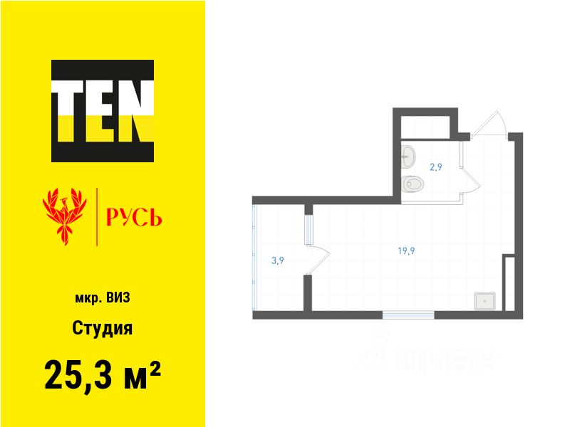 Общая площадь25,3 м2