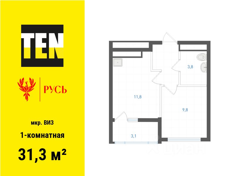 Общая площадь31,3 м2