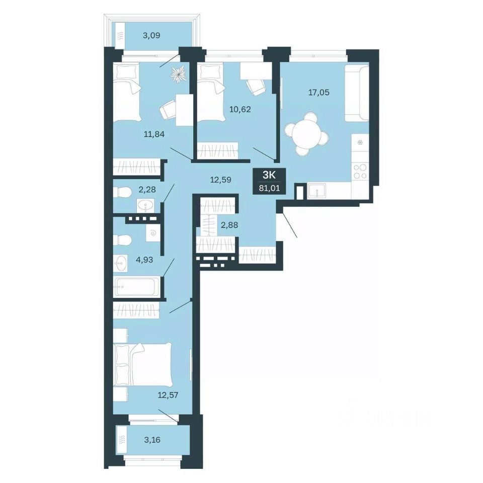 Продаётся 3-комнатная квартира в строящемся доме (Секции 1-4), срок сдачи: II-кв. 2027, общей площадью 81.01 кв.м., на 5 этаже. Новый жилой комплекс ''Сибирская калина'' от застройщика ''СЗ Атлант-Екатеринбург'' расположен по адресу: г. Екатеринбург, улица Титова.