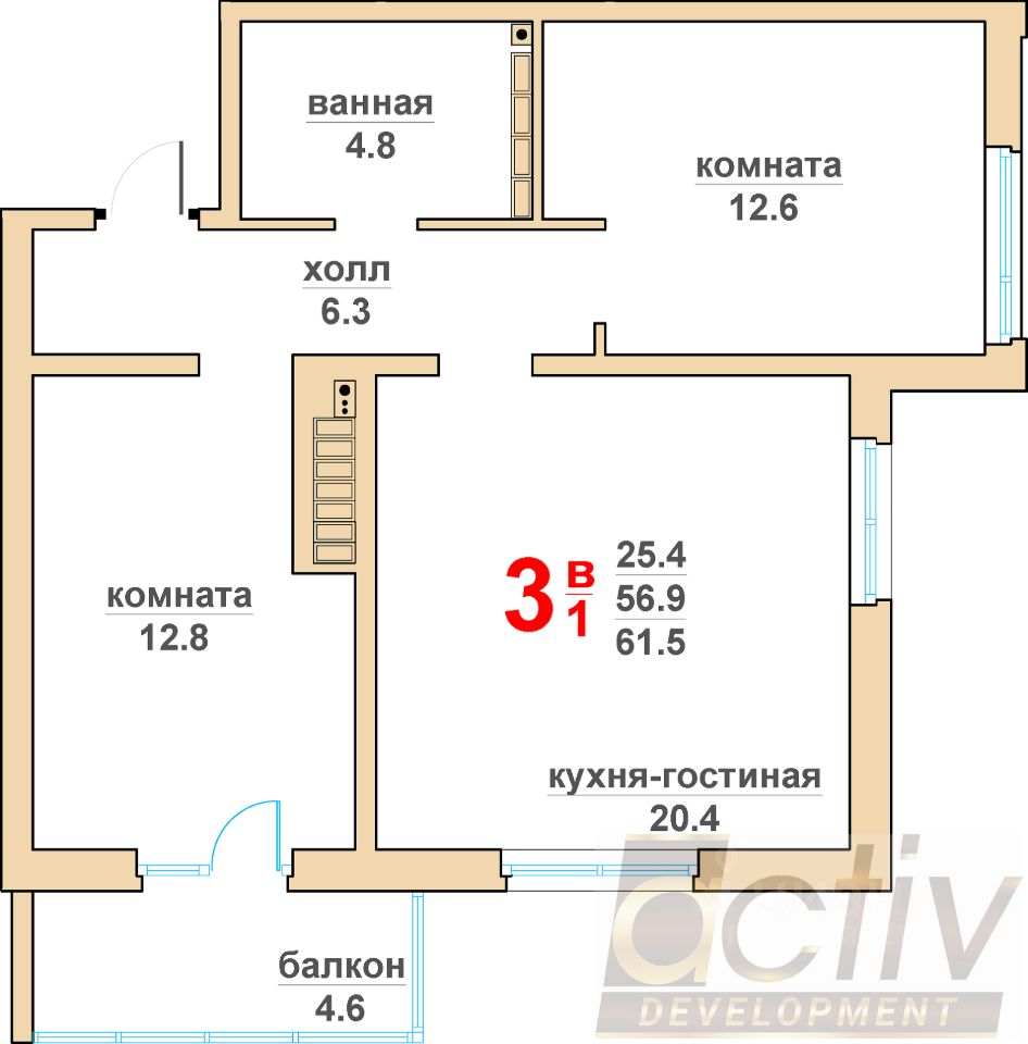 Общая площадь57,2 м2