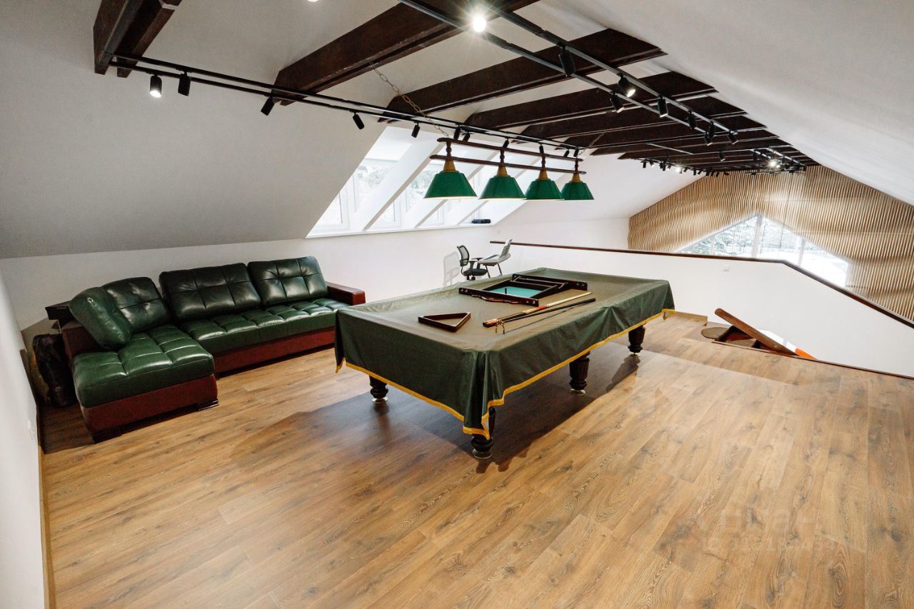 Двухэтажный дом 228,2 кв. м на участке 13,6 соток (по факту больше). На первом этаже: прихожая, холл, большой зал с кухней и камином (60 кв. м, высота 6 м), мастер-спальня с гардеробом и ванной комнатой, санузел, баня на дровах с комнатой отдыха и душевой, котельная и гараж на один автомобиль. На втором большая антресоль с бильярдным 10 футовым столом (камень, премиальное сукно) и комната 20 кв. м, которую можно использовать как детскую или кабинет. Есть терраса и веранда. Большой кухонный гарнитур, деревянная мебель в спальне и прихожей производства IKEA. В зале три новых современных модульных дивана, немецкий стол-трансформер, большой новый телевизор SAMSUNG 85. В спальне новая деревянная кровать и хороший матрас Аскона (ширина 1800), есть телевизор.