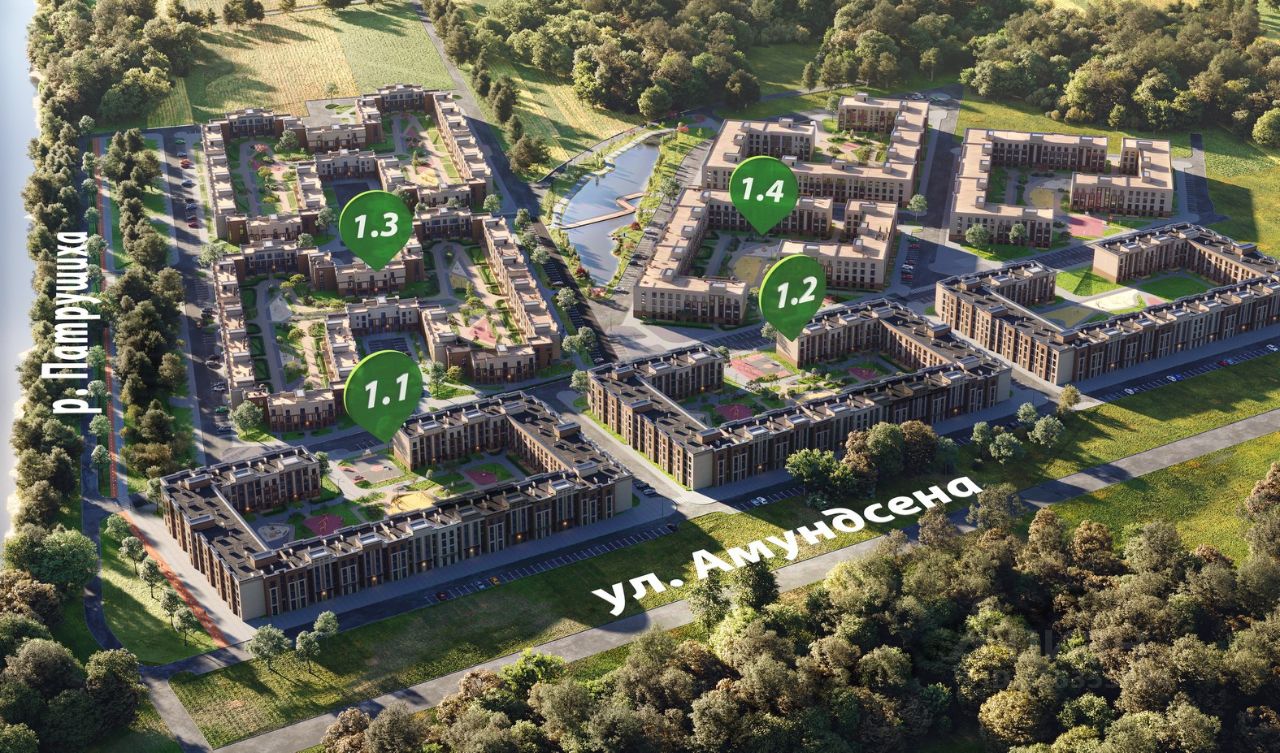 Здесь создано всё для вашего комфорта и безопасности: продуманные планировки, закрытые дворы без машин, экопарк с водоемом на территории, детские площадки, круглосуточное видеонаблюдение, велопарковки.