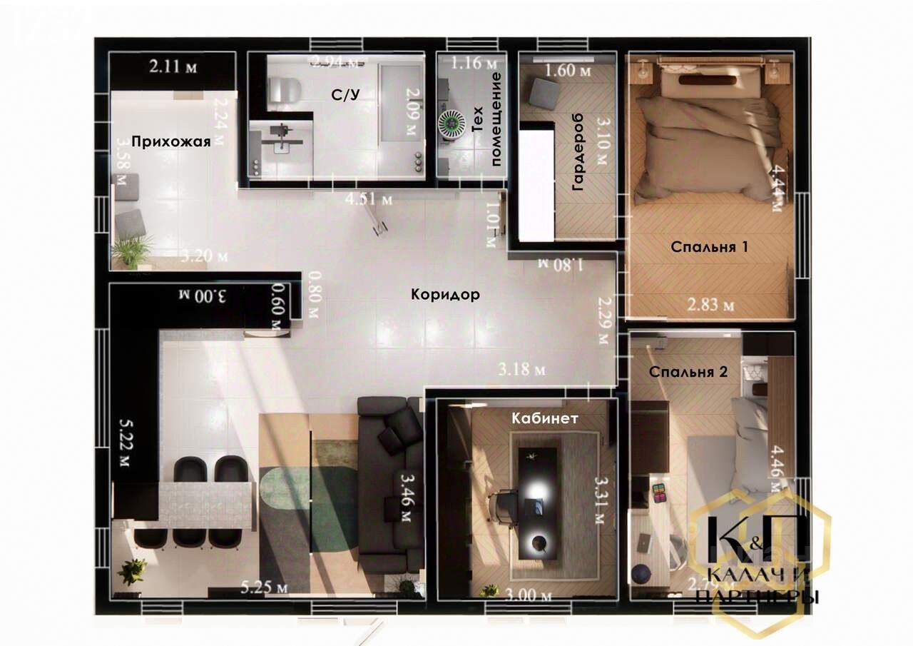 Объект 1232. **Продается дом 105 м² в поселке Бобровский!** Предлагаем вашему вниманию уютный и просторный дом площадью 105 квадратных метров, расположенный в живописном и тихом поселке Бобровский. Здесь вы найдете все необходимое для комфортной жизни вдали от городской суеты, но с сохранением всех благ цивилизации. - Площадь дома: 105 м² - 1 этаж - огромный коридор, большая кухня гостиная, 2 спальни и одна мастер спальня - Материал стен: газоблок 300мм
