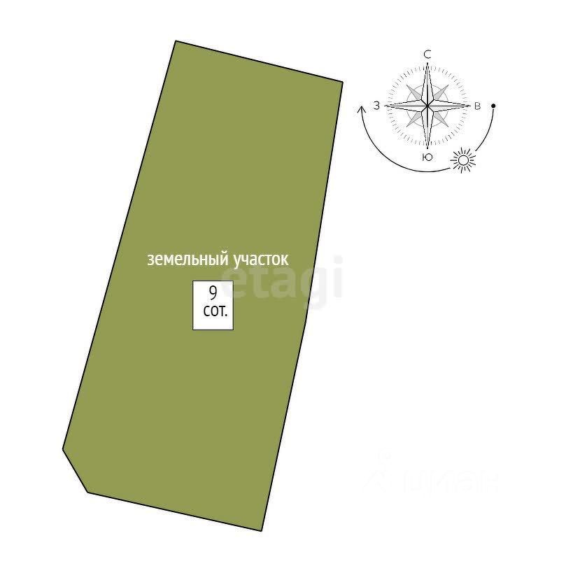 К дому прилегает ровный, сухой земельный участок 9 соток. Участок разработан, имеются различные посадки. Огражден забором из профлиста. Есть баня.