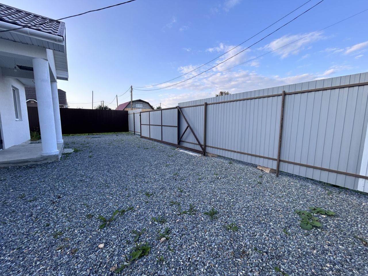 Дом уже огорожен забором с 4-х сторон, есть откатные ворота.