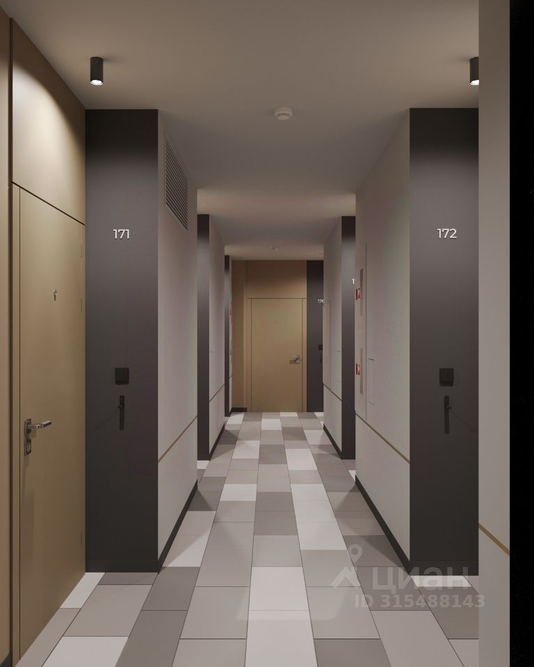 Сквозной холл с мягким лобби служит нейтральной территорией для экспресс-встреч и зоной ожидания для курьеров. В холлах предусмотрены гостевые санузлы, а также зоны с доступом только для жителей: колясочная и место для хранения малогабаритного снаряжения.
