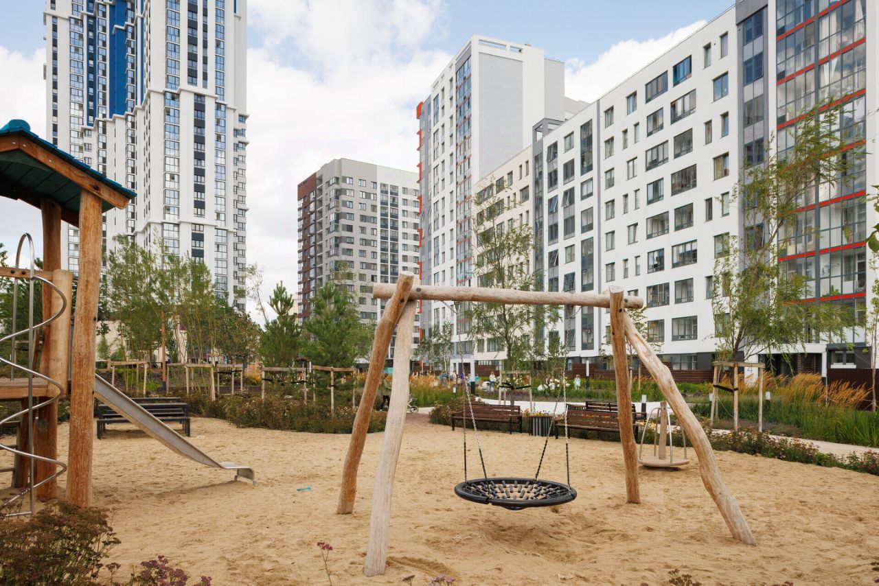 Двор В ландшафтном парке кроме детских площадок вас ждут спортплощадки для футбола и стритбола, воркаут-комплекс и даже крытый деревянный амфитеатр для праздников или отдыха в жаркую погоду. Но это не всё.