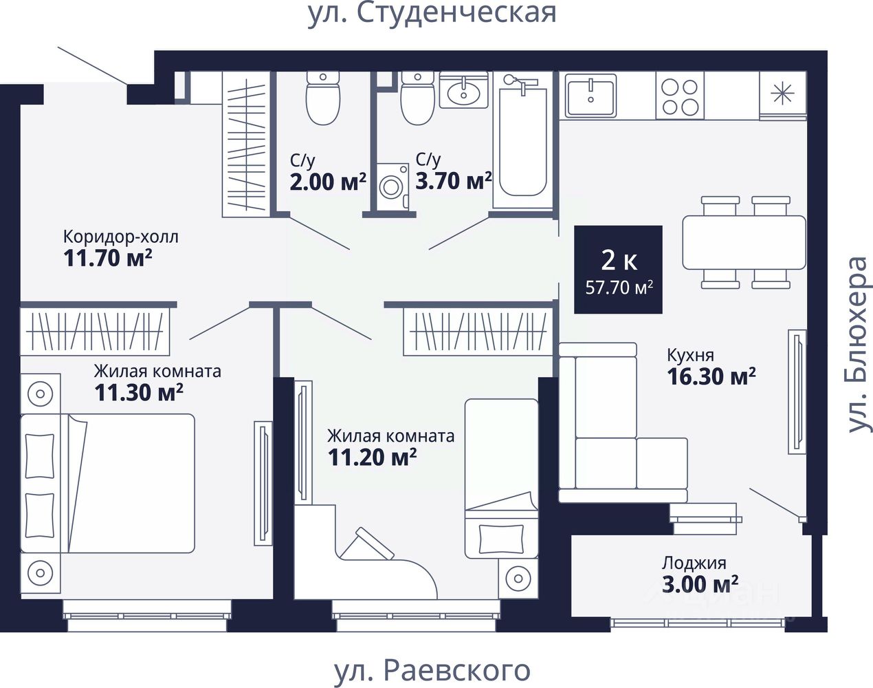 продам 2-к, Раевского, 18/511 470 000 ₽