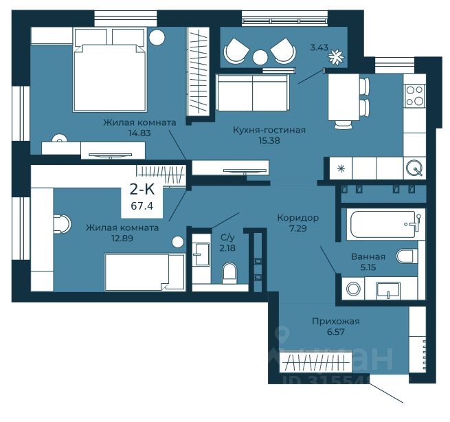 Общая площадь67,4 м2