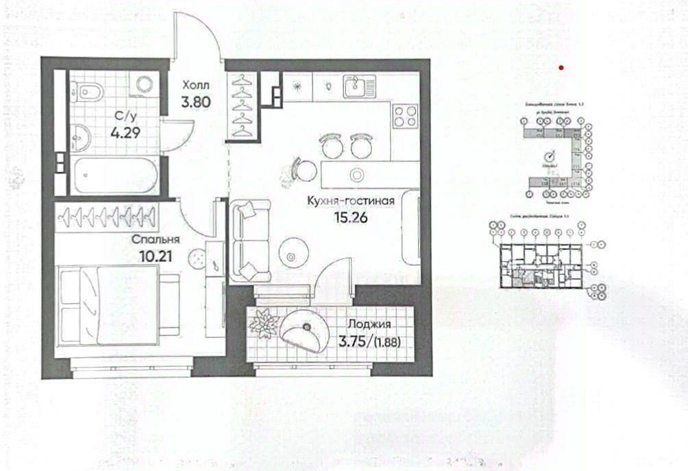 * Удобная планировка: кухня-гостиная 15,3 кв.м и комната 10,2 кв.м.