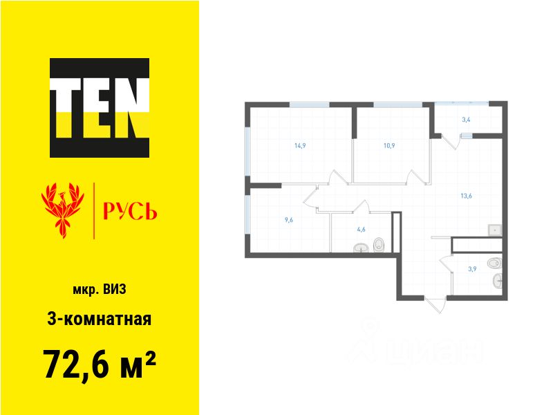 Квартира с чистовой отделкой или под чистовую на ВИЗе от застройщика!