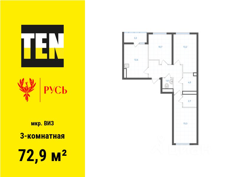 Общая площадь72,9 м2