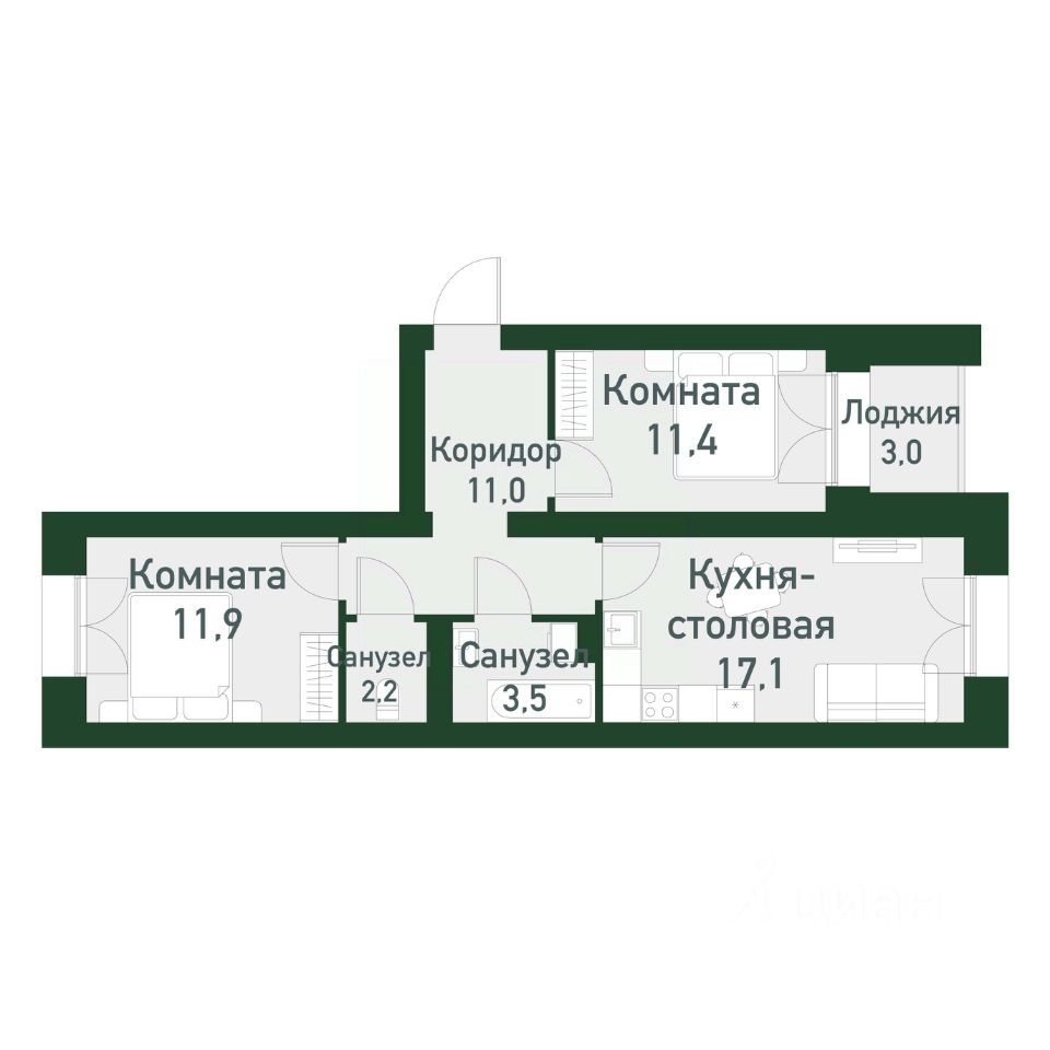 продам 2-к, Амундсена, гп 2.18 512 950 ₽