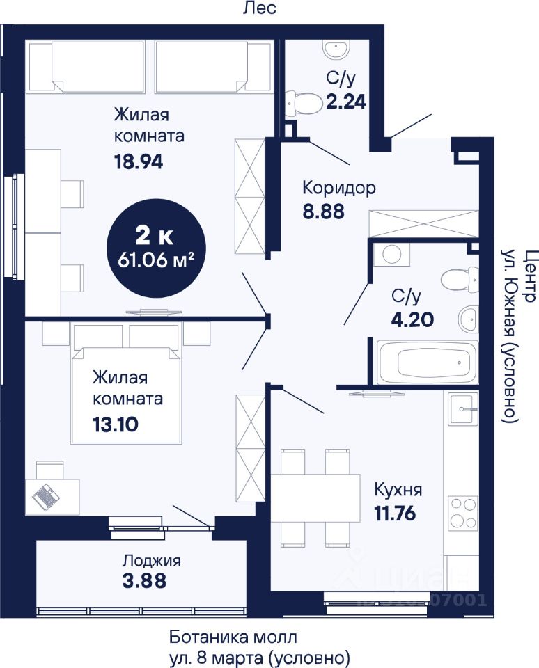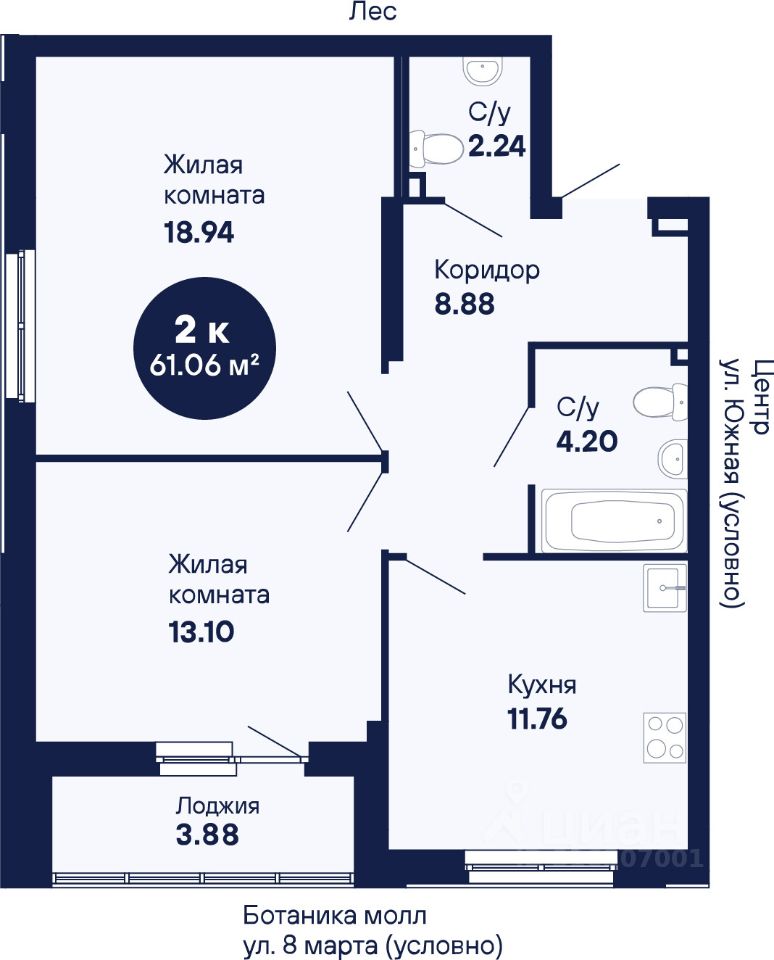 Общая площадь61,06 м2