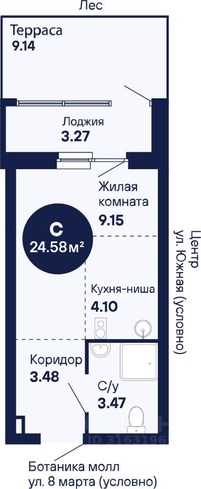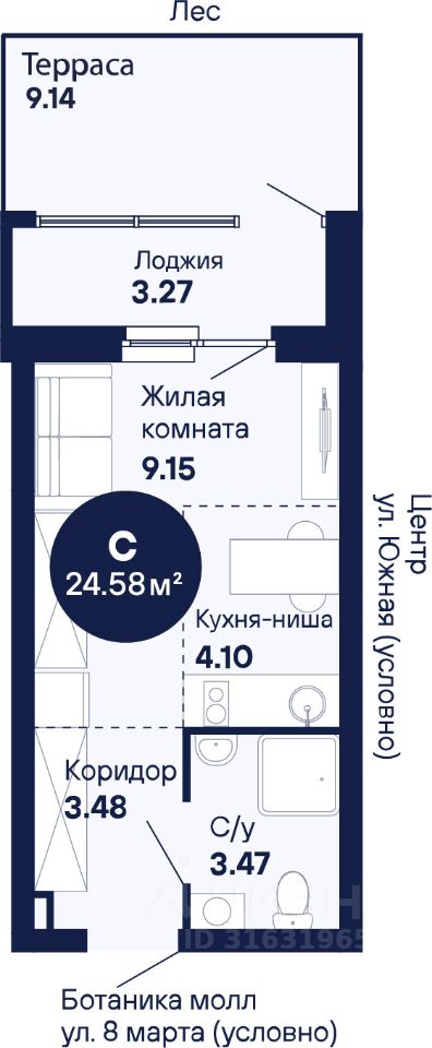 Общая площадь24,58 м2