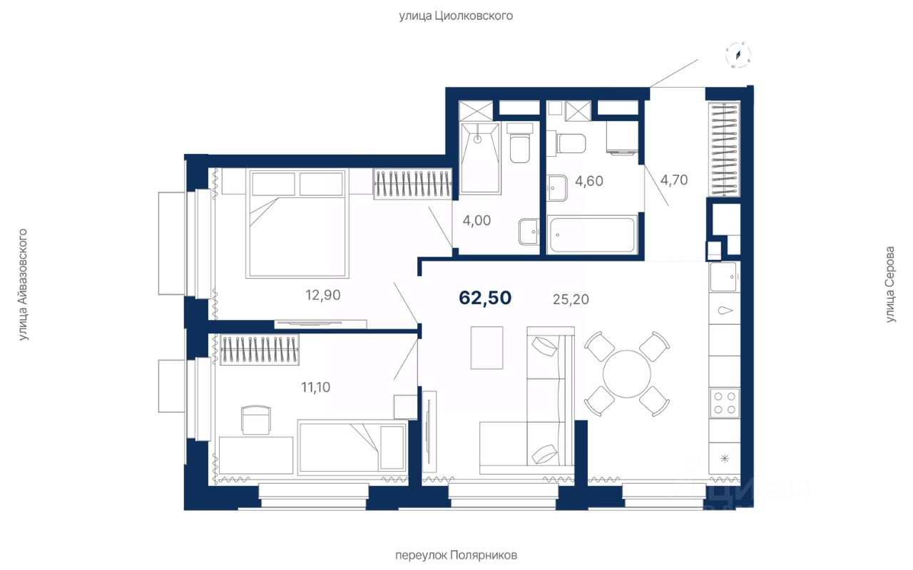 продам 2-к, Полярников переулок, 25 стр.11 368 717 ₽