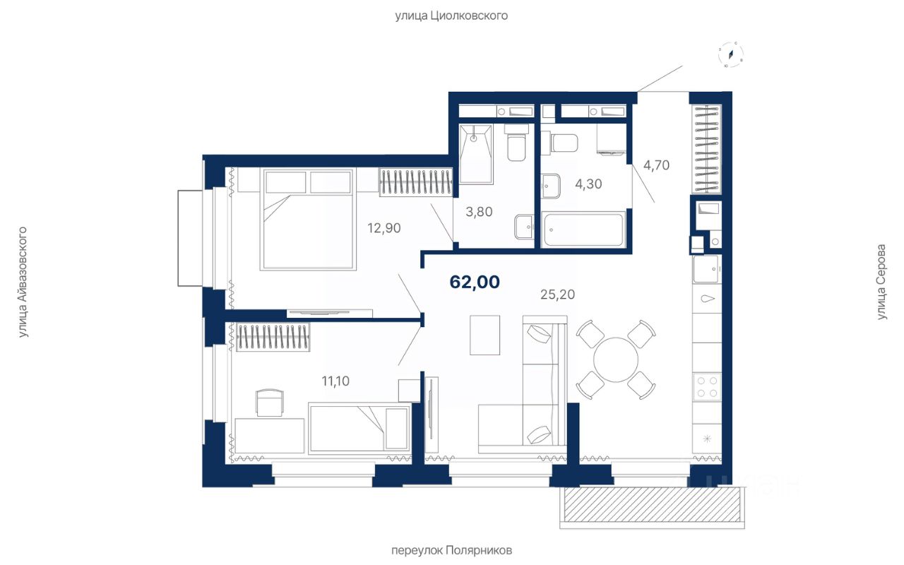 продам 2-к, Полярников переулок, 25 стр.12 157 226 ₽
